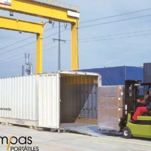 Gracias a la Rampa de logÃstica uso exteriores capacidad 6 / 12 tn las maniobras de descarga contenedores marÃtimos se simplifica al poder que entrar la carretillas al contenedor.